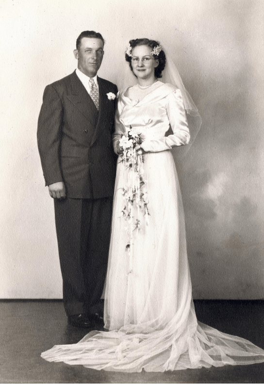 And this is my father, their grandson, and my mother on their wedding day in 1946.