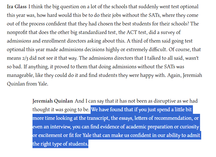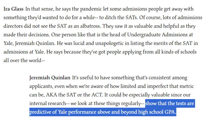 That same person suggested the Dean of Admission at an Ivy League institution had said that the SAT was a better predictor of college grades than high school GPA. That’s funny, because this is what that same person said not too long ago.