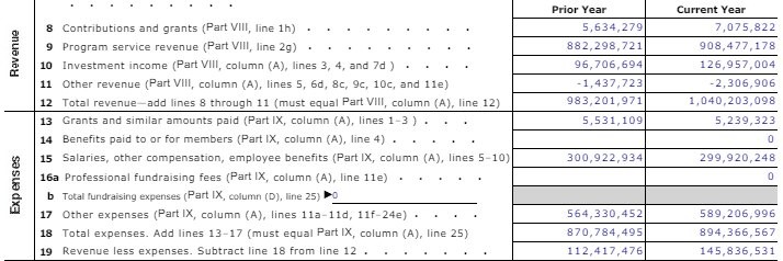 As I wrote last year, College Board is a business, and the sooner we start thinking that way, the better off we’ll all be. And, as a business, they seem to be doing fine. As a not-for-profit business, they’re doing just great, as evidenced by their most recently available form 990 Tax return. You can see the whole thing here or just look at the snippet, below.
