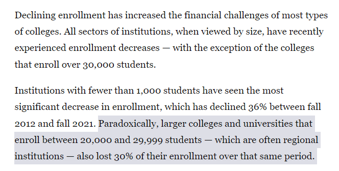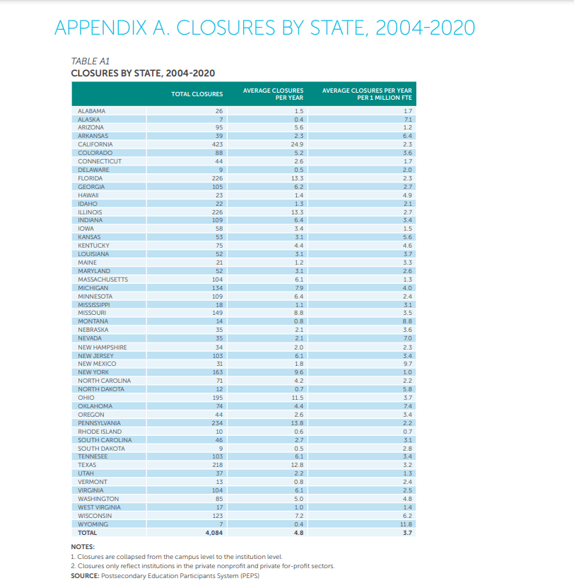 And by no means am I suggesting that traditional, private, not-for-profit colleges are not closing. They are, and as the Higher Ed Dive article rightly points out, very small institutions are most vulnerable, for the most part.