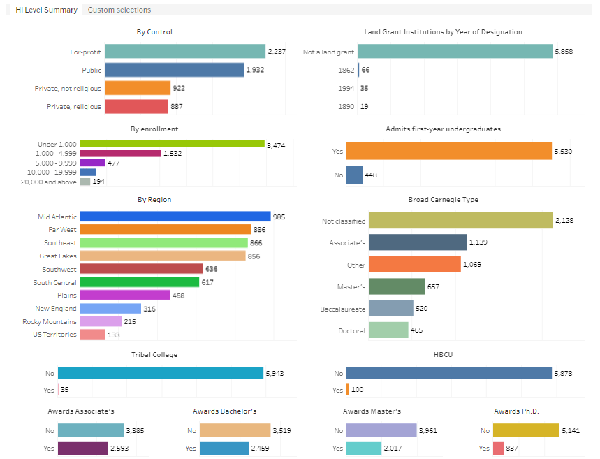 As I wrote on my Higher Ed Data Stories Blog, it’s important to understand what we mean by “a college.” For many people, it’s just those four-year institutions that are public or private, not-for-profit. That, of course, excludes community colleges. And it excludes for-profits. But a definition is always an important place to start the discussion. Don’t say, “colleges” unless you define what a college is.